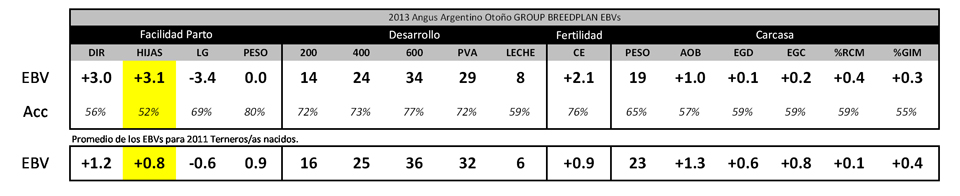 Este es un aspecto muy importante y muchas veces descuidado por los productores que utilizan toros de EBVs o DEPs desconocidos o que no son apropiados para generar buenas hijas. Como herramienta para ayudar en esta selección, contamos con la Facilidad de Parto Indirecta o Facilidad de Parto de las Hijas para que las futuras madres tengan mayor posibilidad de parir su primer ternero sin dificultad.